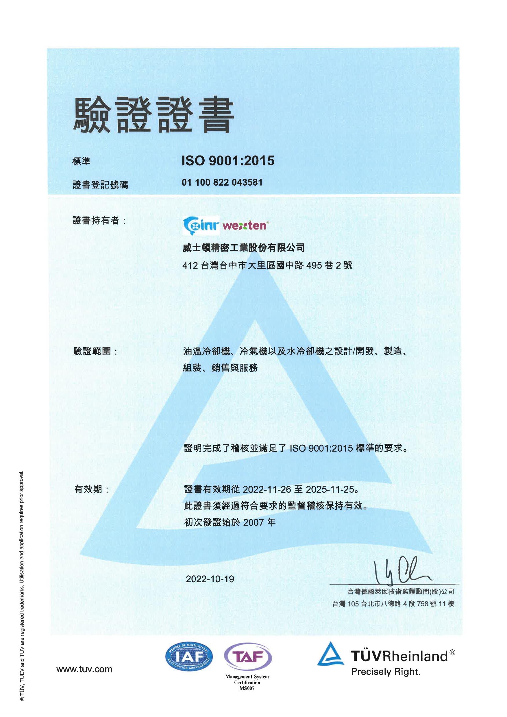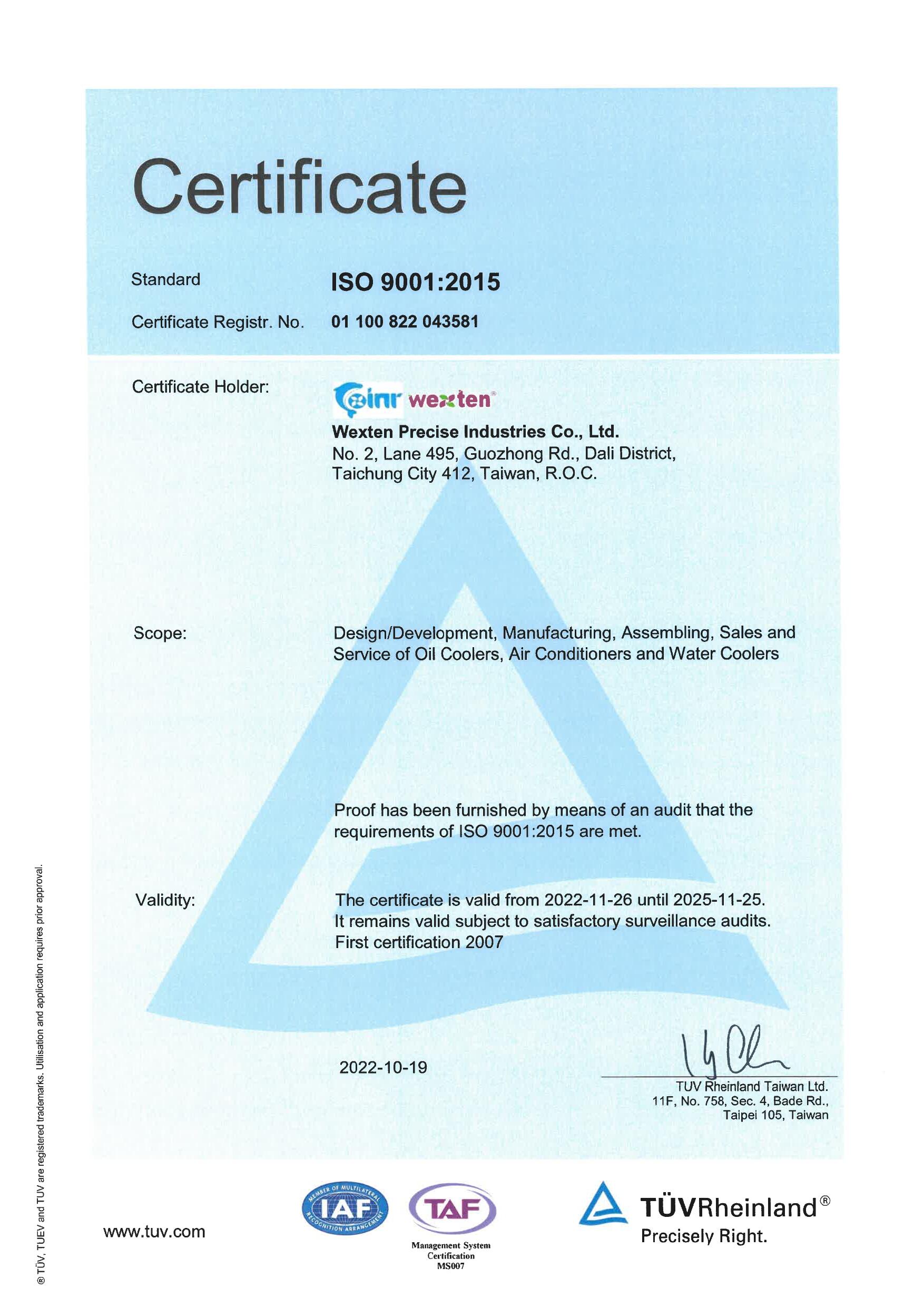 2019.10 | ISO | TÜV Rheinland | ISO 9001:2015 |