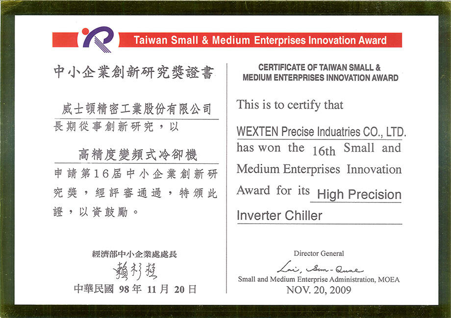 2009.11 | SMEs Innovation Award | Ministry of Economic Affairs | High Precision Inverter Cooler |