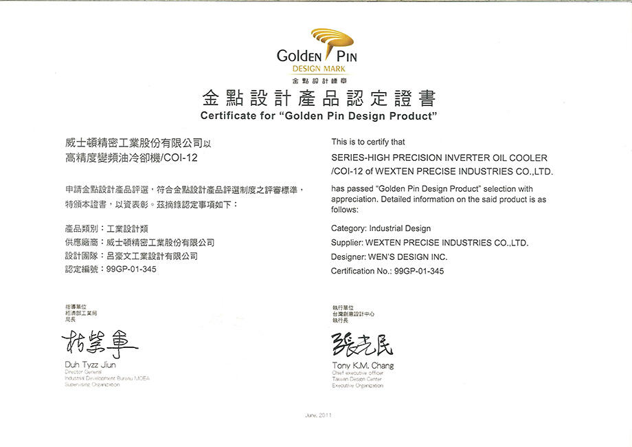 2011.06 | Golden Design | Ministry of Economic Affairs | High precision inverter oil cooler |