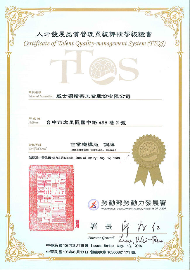 2011.08 | TTQS | Vocational Training Council of the Council of Labor Affairs, Executive Yuan | We won a bronze medal in the training quality assessment system. |